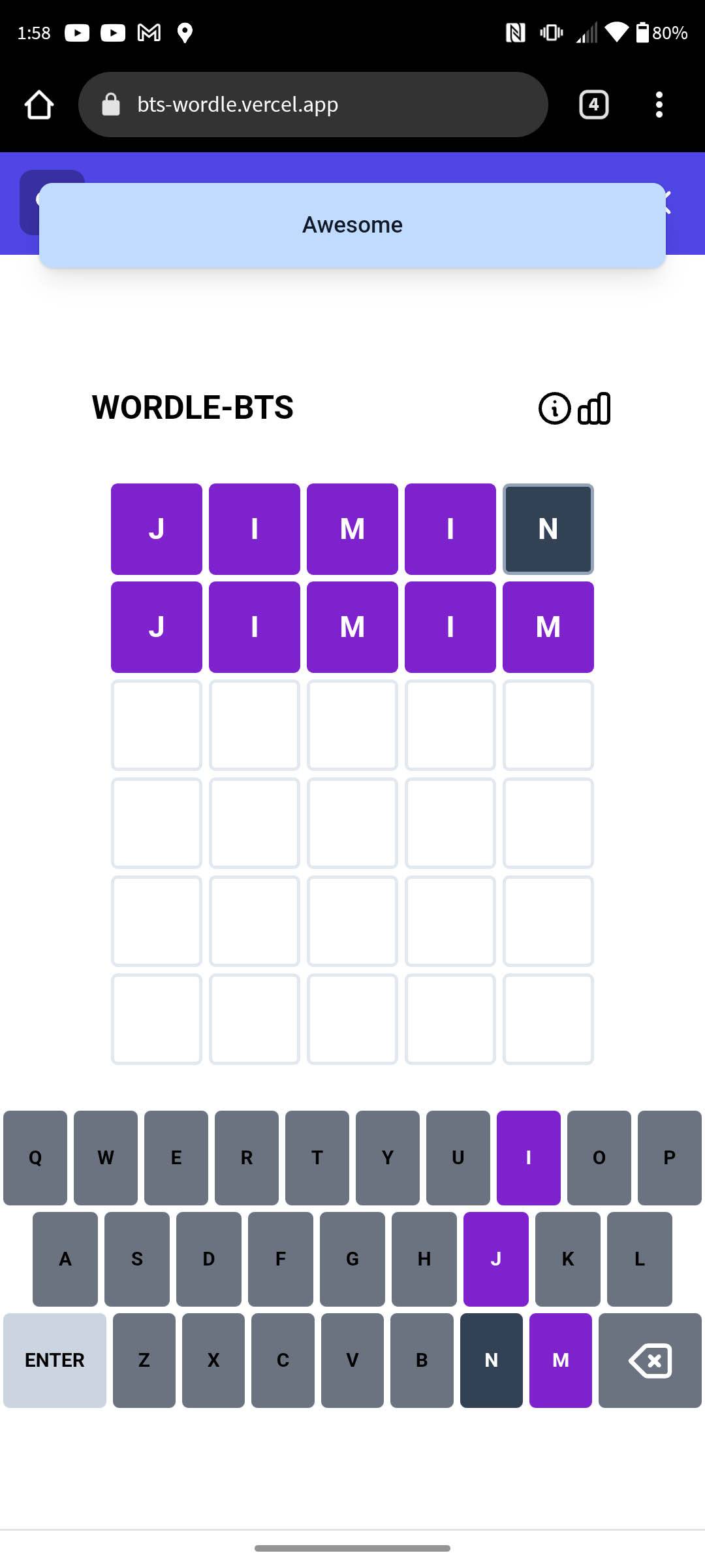 You have some attempts to find the answer first you guess a word and then with the color clues it gives for each letter you should guess your next word. Wordle has been on a tear. This word is an adjective.